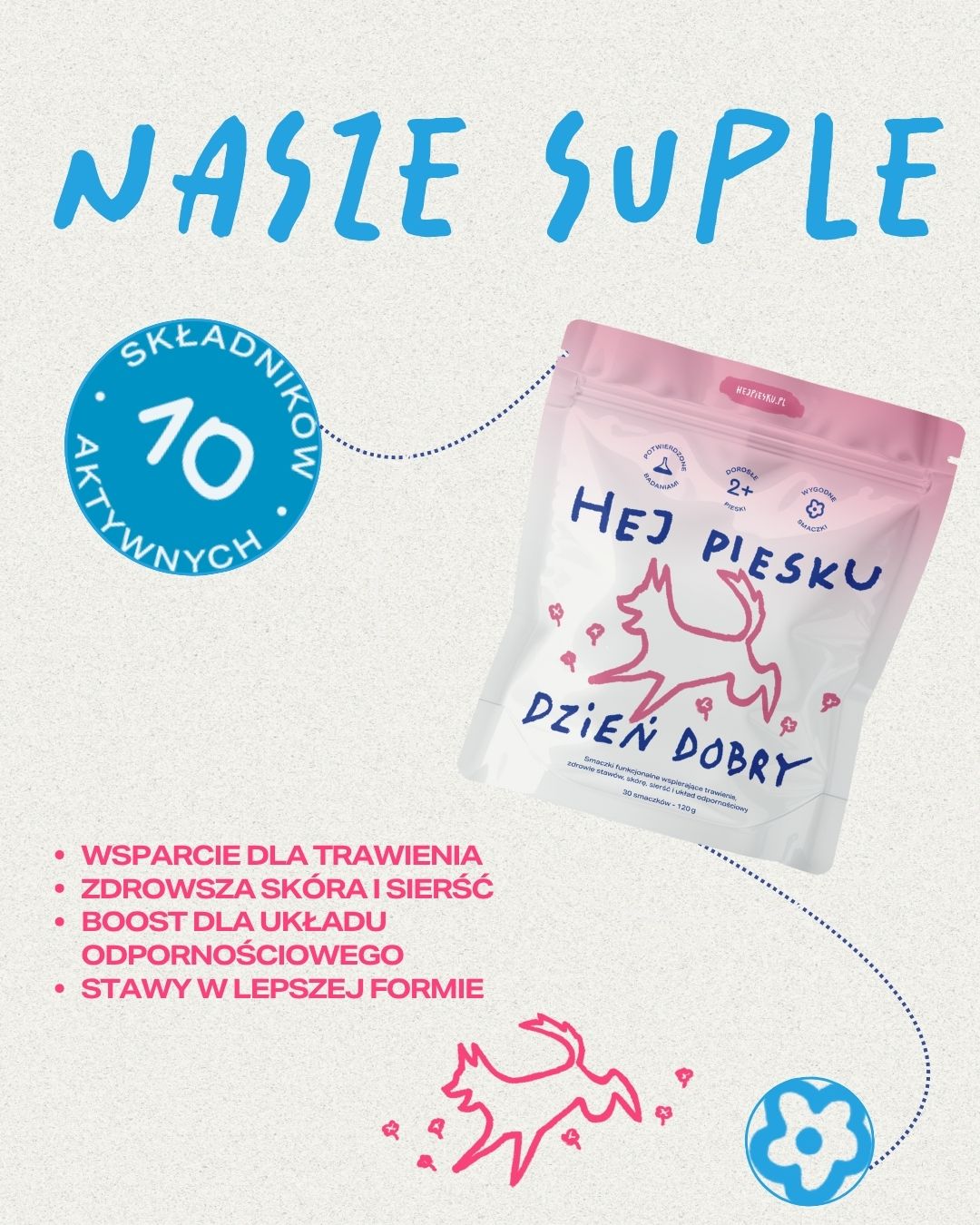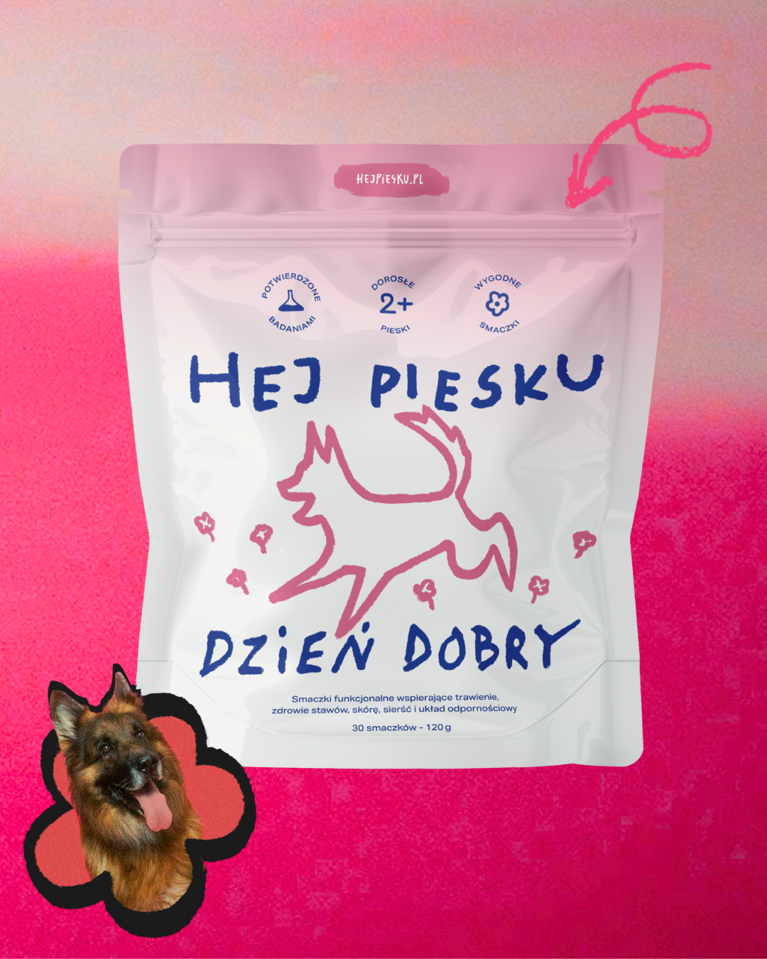 We dedicated our time and hearts to ensuring that dogs live longer, feeling great even as mature dogs and seniors. We know that the aging process can be slowed down, and we are uncompromising in this approach. First, we did it for our German Shepherd Sky, who started aging too quickly after surgery, then for his friends. And now we will do it for anyone who wants to enjoy life with their dog for as long as possible. We are the first brand of dog supplements in Poland in the form of treats, which are packed to the brim with the highest quality natural ingredients, and there are plenty of them. What we are most proud of are the developed formulas for cancer prevention. The statistics are ruthless - the older the dog, the greater the likelihood of developing cancer. Instead of worrying, we prefer to act. The combination of resveratrol and quercetin, which work synergistically to inhibit the growth of cancer cells, reduce inflammation, and neutralize free radicals - you will find only with us. We believe in science and present to you over 1.5 years of research on supporting the longest possible life of a dog in good shape. Most manufacturers are focused on maximizing profit, thus lowering the quality of their products. The supplement market for both humans and animals is still not subject to any 'burdensome' regulations. There is no need to conduct raw material tests, no need to adhere to effective doses, no need to undergo tests for the presence of pesticides or heavy metals. For this reason, it was crucial for us to find a partner who shares our values - only the best for our dogs. We have over 100 quality control points for each of our ingredients, a team of the best dietitians in Poland, and verified suppliers. Our dogs test every product variant; this is a sufficient reason for us to ensure the product is safe and of the highest quality. As dog owners, we know how troublesome powders or tablets can be - the convenience of administration and the ability to reward the dog during a walk were our priority in thinking about the product. We sought ways to accompany you where your dog feels happy. Moreover, our name perfectly fits doing things together. Just see for yourself: HEY DOG, let's go for a walk! It is worth noting that most training treats are just calories and not very healthy additives. Over the years, owners begin to notice a sudden weight gain in their dogs - no wonder. A slower metabolism, and treats do what they want. We want to change that and instead of adding calories, take care of health and vitality. Moreover, our products taste amazing (liver), and the design encourages keeping us on the kitchen counter rather than deep in a cupboard. We wanted our packaging to be beautiful because dogs are beautiful, and time spent with them is beautiful. We loudly say NOT NOW to aging, and health prevention is the foundation of a long, healthy life for us. The earlier we start, the longer our dog will feel good. We encourage getting to know your furry friends, being attentive to their needs, regularly visiting specialists such as a dentist, cardiologist, or orthopedic surgeon, and periodically performing blood tests. Because aging doesn't have to be sad and painful when we take care of the dog's body in time, surrounding it with tenderness and love. Finally, it is our duty to be the kind of person our own dog thinks we are.