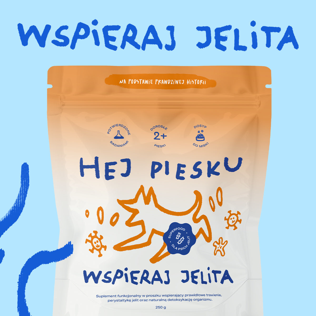 Czas czytania: ok. 11–14 minut Biegunka, wizyta u lekarza, antybiotyk i kilka nieprzespanych nocy z myślą, czy pies na pewno dojdzie do siebie. Gdy ostrzejsze objawy mijają, zostaje jedno: jak wesprzeć jelita psa, żeby wróciły do równowagi i nie wpadły w błędne koło nawracających biegunek. To właśnie ten etap – spokojnej regeneracji – często decyduje o tym, jak pies będzie się czuł w kolejnych tygodniach. W tym artykule przeprowadzimy Cię przez praktyczny plan: od diety po antybiotykoterapii, przez probiotyk dla psa po antybiotyku, aż po łagodne suplementy dla psa na trawienie i jelita, które mogą stać się elementem codziennej troski. Spis treści Co antybiotyki robią z jelitami psa? Biegunka u psa – co się dzieje w jelitach? Kiedy biegunka po antybiotyku wymaga pilnej wizyty u lekarza? Probiotyk dla psa po antybiotyku – dlaczego ma sens? Probiotyk dla psa biegunka – co mówią badania? Dieta, błonnik i prebiotyki po biegunce „Wspieraj Jelita” i inne suplementy dla psa jelita w codziennej trosce FAQ: probiotyk dla psa po antybiotyku i biegunce Źródła Co antybiotyki robią z jelitami psa? Antybiotyki ratują zdrowie i życie – ale równocześnie potrafią mocno zaburzyć mikrobiom jelitowy. Działają nie tylko na „złe”, ale też na pożyteczne bakterie, co może prowadzić do dysbiozy, luźnych stolców, wzdęć, a czasem nawracających biegunek już po zakończeniu leczenia. „Po antybiotykach, chorobie i stresie jelita wymagają celowego wsparcia. Błonnik, prebiotyki i probiotyki są kluczowe dla odbudowy flory jelitowej.” Hej Piesku – Jak poprawić florę jelitową psa? Przegląd ENOVAT i aktualne wytyczne podkreślają, że wiele łagodnych epizodów biegunki u psów nie wymaga antybiotyku, a jego rutynowe stosowanie może wręcz pogorszyć równowagę mikrobiomu. Dlatego coraz częściej lekarze sięgają po dietę, probiotyk dla psa, synbiotyki (probiotyk + prebiotyk) i odpowiednie suplementy dla psa na jelita zamiast kolejnej dawki środka przeciwbakteryjnego. Biegunka u psa – co się dzieje w jelitach? Biegunka to dla jelit sygnał, że coś zaburzyło ich równowagę: infekcja, nagła zmiana karmy, stres, zatrucie albo właśnie antybiotyk. W ostrych przypadkach (do 14 dni) celem jest przede wszystkim nawodnienie, łagodna dieta i stabilizacja konsystencji stolca – dopiero kolejne kroki to szukanie przyczyn przewlekłych. Badania pokazują, że u psów z ostrą biegunką zmienia się skład mikrobiomu – spada różnorodność bakterii, a rośnie liczba gatunków powiązanych z zapaleniem. Dlatego tak ważne jest, by po ustąpieniu ostrych objawów nie zostawiać jelit „samych sobie”, ale zaplanować regenerację krok po kroku. Kiedy biegunka po antybiotyku wymaga pilnej wizyty u lekarza? Zanim przejdziemy do suplementacji, ważne rozróżnienie: kiedy możesz spokojnie wprowadzać dietę i suplement dla psa na trawienie, a kiedy priorytetem jest szybka diagnostyka. Do lekarza weterynarii warto zgłosić się od razu, jeśli widzisz: wodnistą biegunkę z krwią lub śluzem, wymioty, gorączkę, silny ból brzucha, apatię, objawy odwodnienia (suchy język, zapadnięte gałki oczne), biegunkę trwającą dłużej niż 2–3 dni, mimo lekkiej diety, biegunki nawracające u szczeniaka, psa seniora lub przy chorobach przewlekłych. Suplementy – nawet najlepsze – są wsparciem, a nie leczeniem przyczynowym. Rozsądny plan to najpierw diagnoza i stabilizacja, a potem dopiero probiotyki, prebiotyki i stopniowy powrót do zwykłego jedzenia. Probiotyk dla psa po antybiotyku – dlaczego ma sens? Gdy terapia antybiotykiem dobiega końca, wiele osób pyta, czy probiotyk dla psa po antybiotyku naprawdę coś zmienia. Badania sugerują, że tak: dobrze dobrane szczepy mogą skrócić czas trwania biegunki, poprawić konsystencję stolca i pomóc szybciej odbudować mikrobiom. „Probiotyki, synbiotyki i prebiotyki mogą skutecznie skracać czas trwania biegunki i poprawiać konsystencję kału, bez ryzyka związanego z antybiotykami.” ENOVAT / IPA – New Guidelines on the Use of Antibiotics in Canine Diarrhea W jednym z badań z podwójnie ślepą próbą u psów z ostrą, niepowikłaną biegunką zastosowanie preparatu probiotycznego (Enterococcus faecium) skróciło czas choroby i zmniejszyło odsetek psów, które wymagały dodatkowego leczenia, w porównaniu z placebo. Inne badanie z udziałem Lactobacillus pochodzenia psiego pokazało szybszą normalizację konsystencji stolca i korzystne zmiany w mikrobiomie. Probiotyk dla psa biegunka – co mówią badania? Sformułowanie probiotyk dla psa po biegunce pojawia się często, gdy opiekun szuka wsparcia przy ostrych epizodach. Przeglądy badań pokazują, że codzienne podawanie probiotyku może poprawić wyniki kliniczne u psów z ostrą biegunką: szybciej ustępują objawy, poprawia się konsystencja stolca, a mniej psów wymaga dodatkowego leczenia. Ważne jednak, by wybierać produkty z jasno opisanymi szczepami i dawkami, dedykowane psom – „jakikolwiek probiotyk” nie zawsze znaczy to samo. Dobrym podejściem jest połączenie preparatu probiotycznego z dietą lekkostrawną i łagodnym suplementem dla psa na trawienie, który dostarczy błonnika i prebiotyków – czyli „pożywki” dla dobrych bakterii. Dieta, błonnik i prebiotyki po biegunce Po antybiotyku i biegunce jelita psa są jak organizujący się na nowo „ogród” – nie wystarczy dosiać roślin (probiotyk), trzeba też zadbać o glebę (błonnik, prebiotyki, spokojne żywienie). Tu wchodzą w grę suplementy dla psa na trawienie i jelita, ale też zwykłe, codzienne wybory w misce. Dobrze zaplanowana dieta po epizodzie biegunki opiera się zwykle na: lekkostrawnym białku (np. karma gastroenterologiczna dobrana przez lekarza), kontrolowanej ilości tłuszczu, odpowiedniej ilości błonnika rozpuszczalnego (dynia, inulina, pulpa jabłkowa) i nierozpuszczalnego (babka płesznik), st